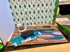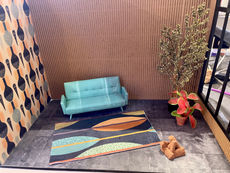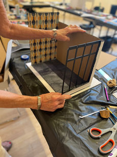 the Mid-century Modern Pop-up Den Kit. Participants spent 3+ hours creating stunning 1:12 scale spaces. This immersive workshop celebrated the era’s signature aesthetics, blending thoughtfully designed furniture and finishes with period-inspired details. Each curated kit included miniature designer furniture replicas and an array of vintage wallpaper patterns and flooring, all selected to evoke the essence of this beloved style.