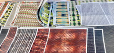 Small Matters Miniatures provided the complete kits that included a 3-section wall unit with an expansive 4-panel window, a floor base, a roof panel for the vaulted ceiling, solid birch wood beams, a traditional sofa kit, a sunburst clock kit, 3D-printed furniture included a Malm fireplace with log bundle, tripod lamp, and a two-tier coffee table, paints, and adhesives.
